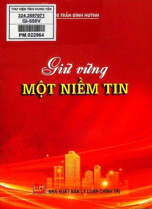 Cuốn sách “Giữ vững một niềm tin” của PGS Trần Đình Huỳnh do Nhà xuất bản Lý luận chính trị ấn hành năm 2024. Cuốn sách dày 532 trang, khổ 14,5x20,5cm, tập hợp các công trình nghiên cứu của tác giả trong nhiều năm, trong đó có một số tác phẩm đạt giải cao của Cuộc thi viết chính luận “Bảo vệ nền tảng tư tưởng của Đảng, đấu tranh phản bác các quan điểm sai trái, thù địch trong tình hình mới”, Giải báo chí toàn quốc về xây dựng Đảng… Nội dung cuốn sách giúp bạn đọc hiểu hơn về Chủ nghĩa Mác-Lênin, tư tưởng Hồ Chí Minh, chủ trương, đường lối của Đảng, chính sách, pháp luật của Nhà nước trên các lĩnh vực. Đặc biệt, có nhiều bài viết tác giả đã đấu tranh trực diện với những quan điểm sai trái, thù địch của các thế lực thù địch; đấu tranh với những biểu hiện lệch lạc về tư tưởng, suy thoái về đạo đức, lối sống, văn hóa… của một bộ phận cán bộ, đảng viên. Ngọn đuốc sáng rực xuyên suốt toàn bộ cuốn sách chính là sự kiên định, là niềm tin vững vàng của tác giả về một trong những nhiệm vụ chính trị quan trọng mà toàn Đảng, toàn quân và toàn dân ta đang ra sức thực hiện là bảo vệ nền tảng tư tưởng của Đảng, đấu tranh phản bác các quan điểm sai trái, thù địch.