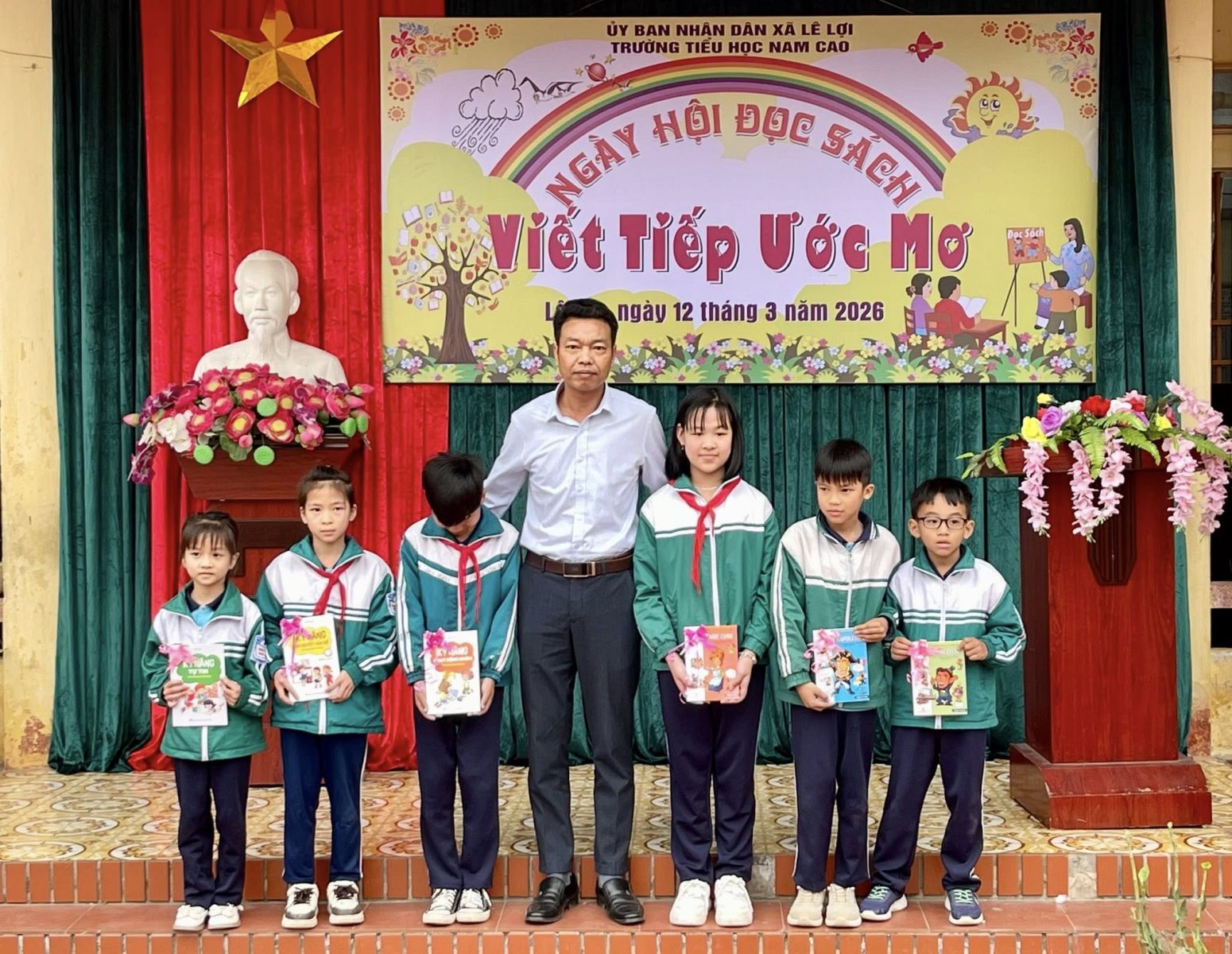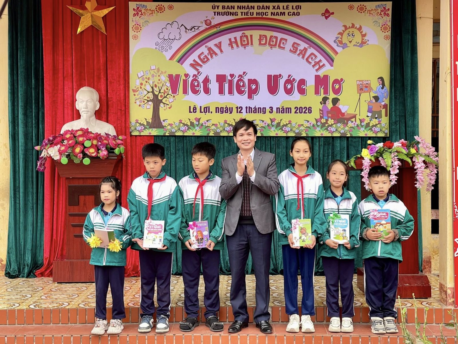 Sáng ngày 12/03/2026, Thư viện tỉnh Hưng Yên đã thực hiện chuyến xe ôtô thư viện lưu động đầu xuân tại Trường Tiểu học Nam Cao, xã Lê Lợi, tỉnh Hưng Yên với chủ đề "Viết tiếp ước mơ". Đây là hoạt động nhằm hưởng ứng Ngày Sách và Văn hóa đọc Việt Nam 21/4 hàng năm, đồng thời khởi động chuỗi hành trình lan tỏa tri thức của đơn vị trong năm 2026. Tham dự chương trình đại diện Thư viện tỉnh có ông Đào Văn Quyến, Giám đốc; bà Lê Thị Thanh, Phó Giám đốc; đại diện lãnh đạo các phòng chuyên môn cùng một số viên chức của đơn vị. Về phía địa phương có ông Đinh Đức Cảnh, Phó Trưởng phòng Văn hóa - Xã hội xã Lê Lợi; cô giáo Trần Thị Loan, Bí thư Chi bộ, Hiệu trưởng, cùng toàn thể cán bộ, giáo viên và 309 em học sinh Trường Tiểu học Nam Cao.