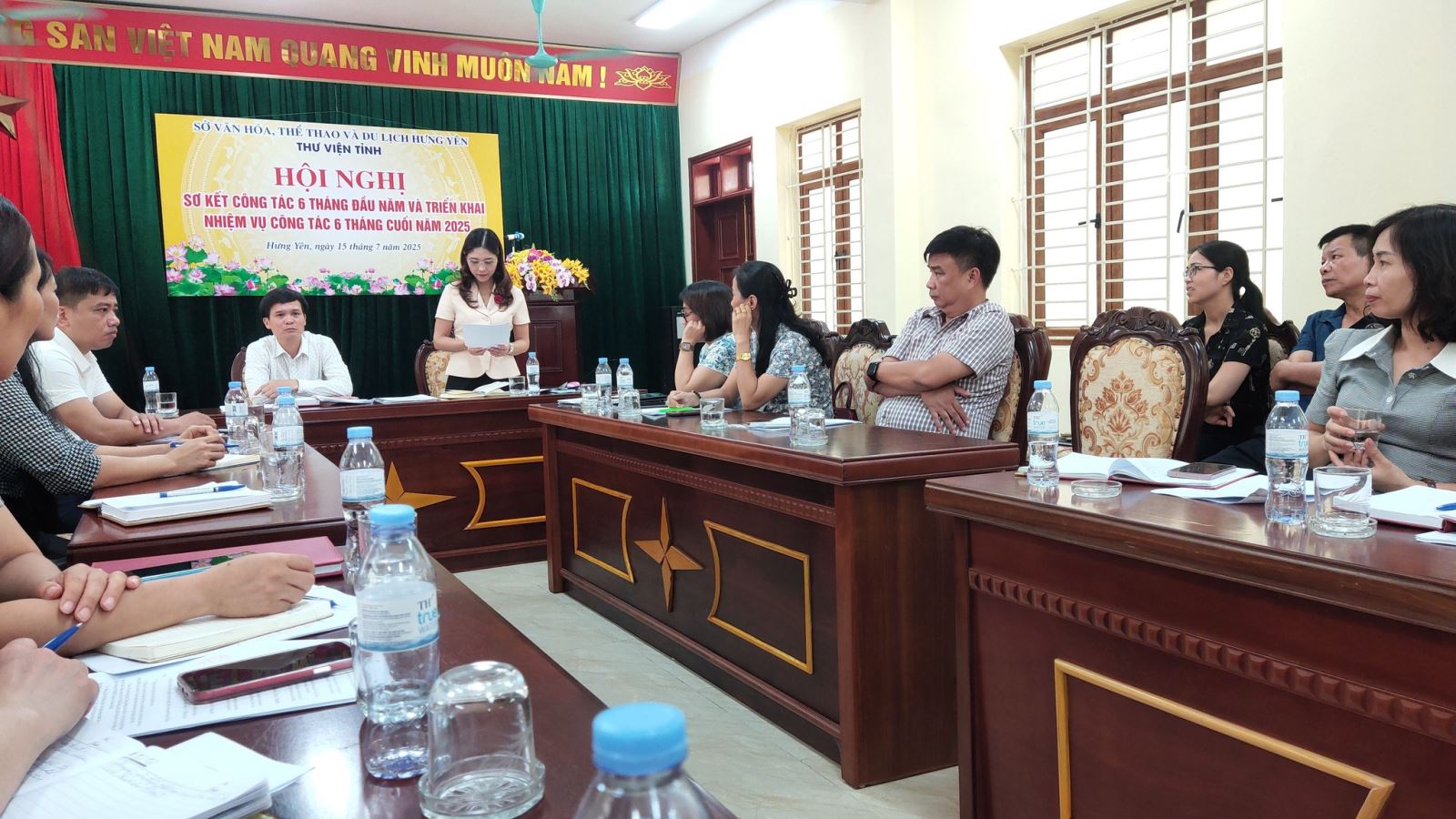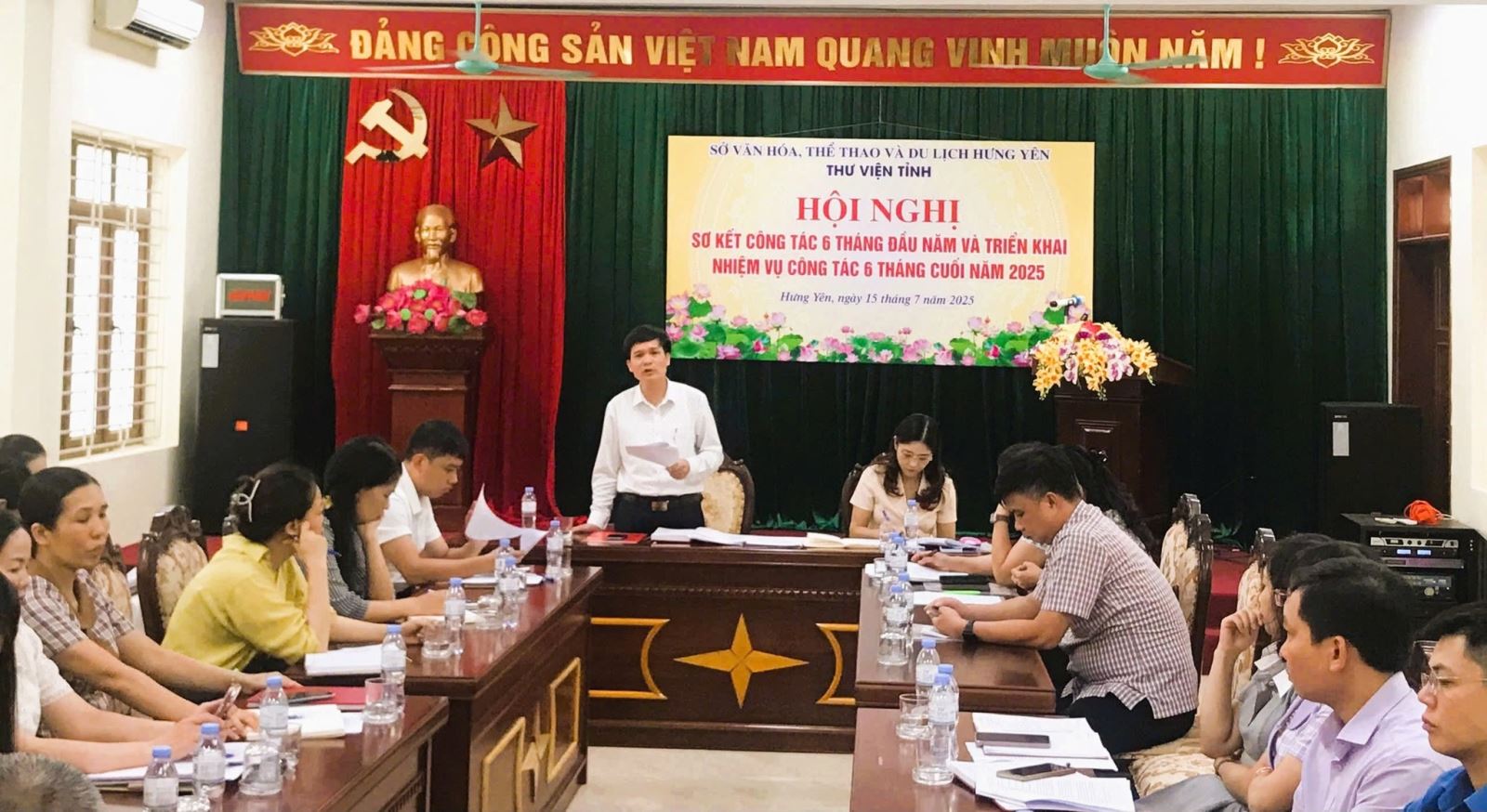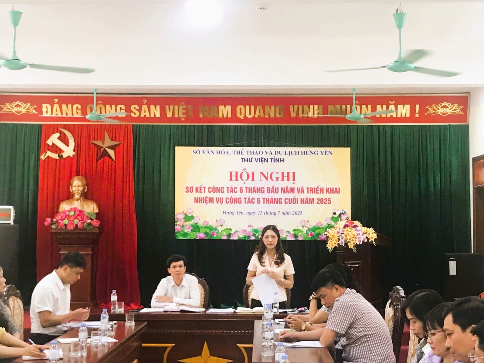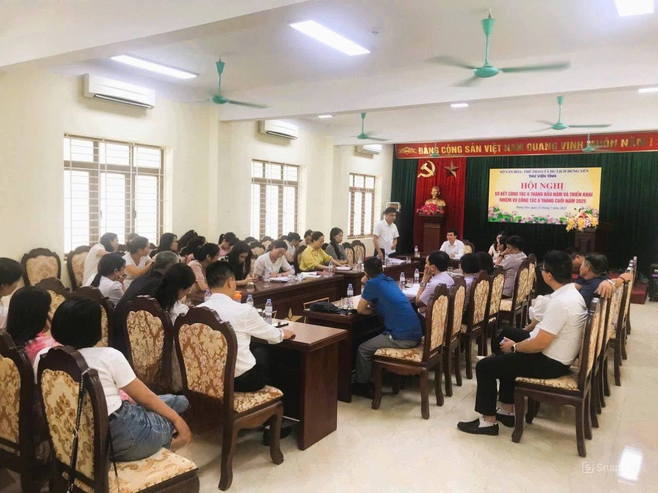Sáng 15/7/2025, tại trụ sở chính, Thư viện tỉnh Hưng Yên tổ chức Hội nghị sơ kết hoạt động 6 tháng đầu năm và triển khai phương hướng, nhiệm vụ 6 tháng cuối năm. Tới dự và chỉ đạo Hội nghị có bà Bùi Thị Lương, Phó Giám đốc Sở Văn hóa, Thể thao và Du lịch tỉnh Hưng Yên, sự tham gia đầy đủ của viên chức, người lao động 02 cơ sở.