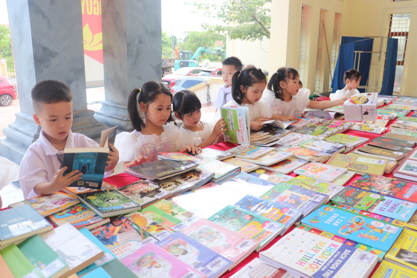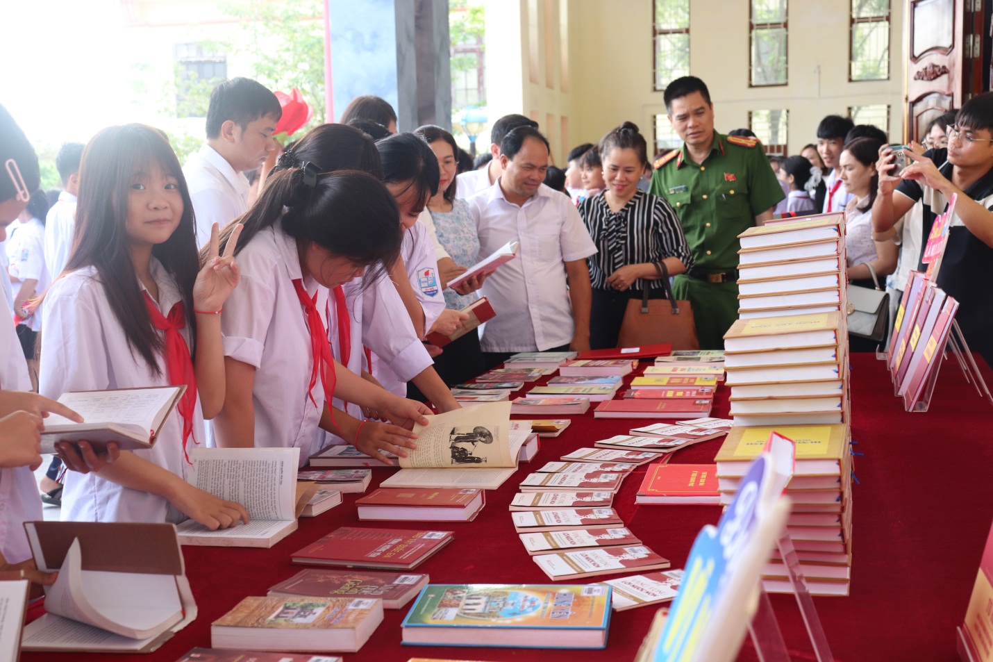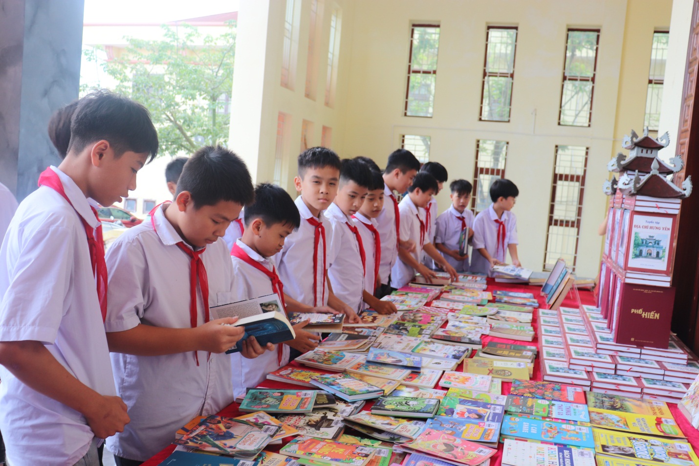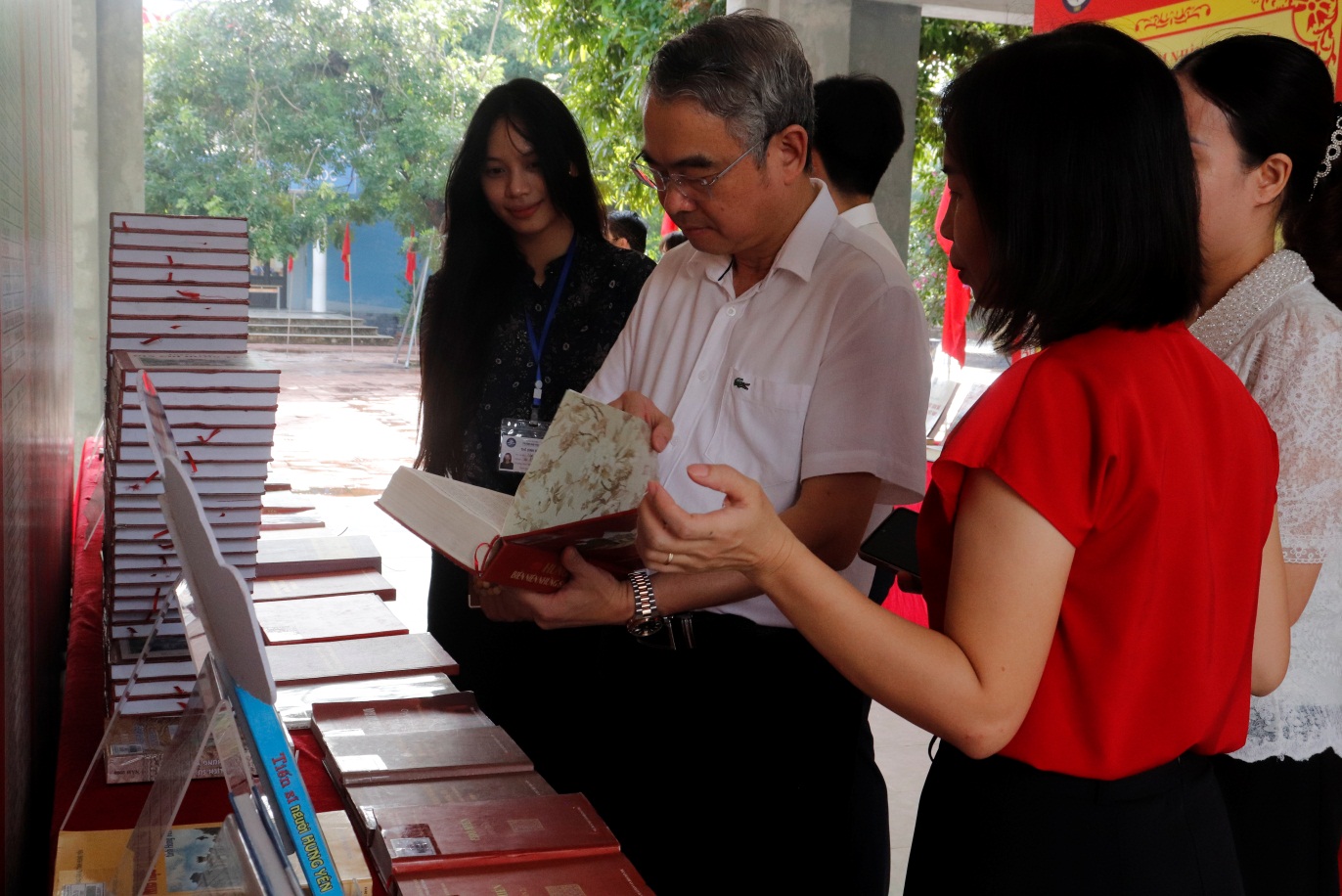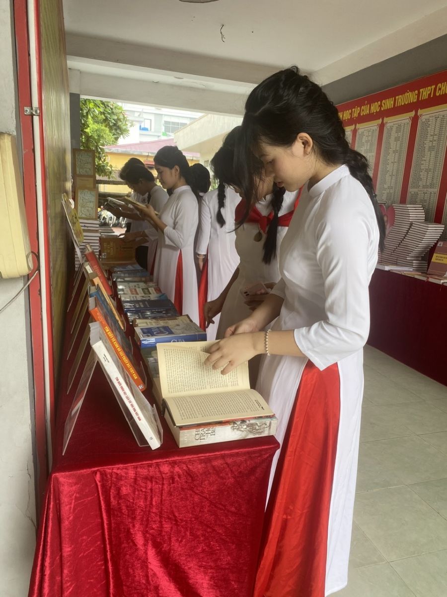 thăm quan gian trưng bày sách tại trường THPT Chuyên Hưng Yên