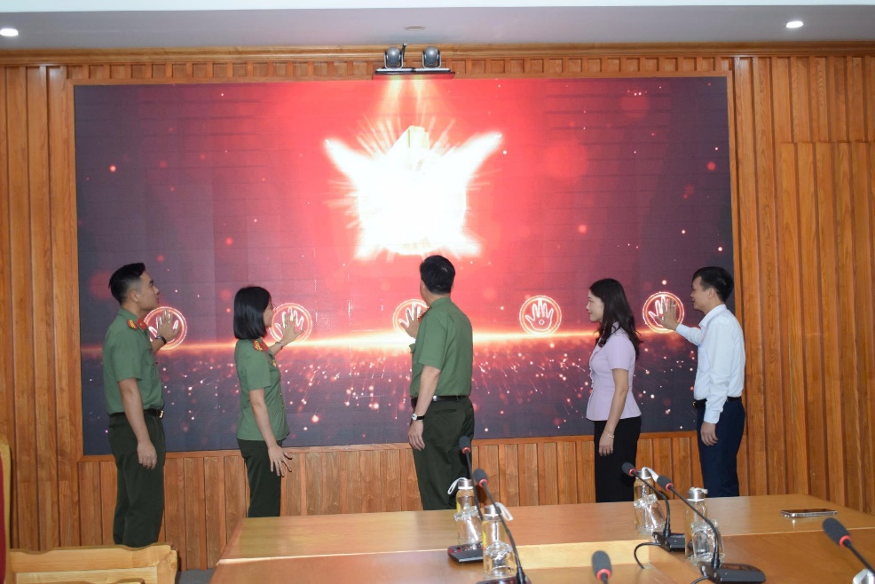 Các đại biểu bấm nút ra mắt Thư viện số Công an tỉnh