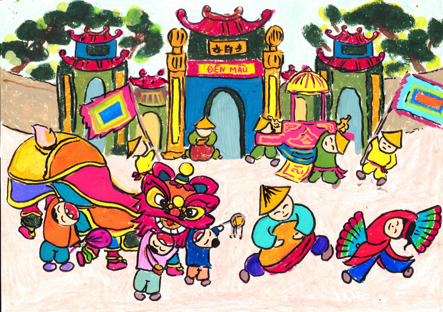 Hình ảnh lễ hội đền Mẫu trong tranh vẽ của thí sinh dự thi