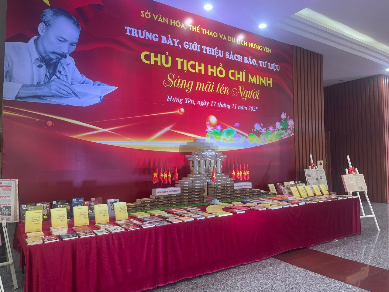 Nhân dịp này, Thư viện tỉnh Hưng Yên tổ chức gian trưng bày giới thiệu sách báo chuyên đề về: Chủ tịch Hồ Chí Minh; Bác Hồ với Hưng Yên; mảnh đất và con người Hưng Yên. Với trên 300 cuốn sách báo, ấn phẩm, tài liệu, nội dung trưng bày được chia làm 2 chủ đề chính: