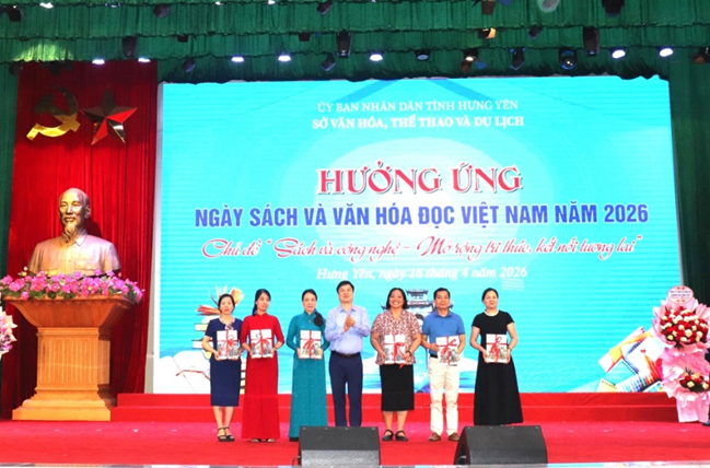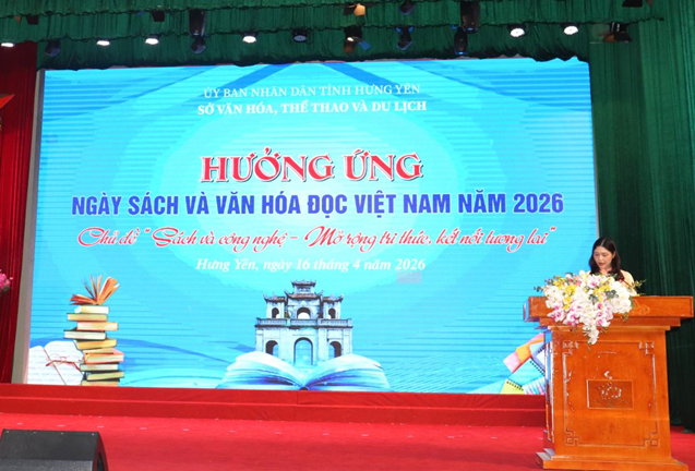 Sáng ngày 16/4/2026, tại Trung tâm Thông tin - Hội nghị tỉnh, Sở Văn hóa, Thể thao và Du lịch Hưng Yên tổ chức Ngày Sách và Văn hóa đọc Việt Nam năm 2026 với chủ đề: “Sách và công nghệ - Mở rộng tri thức, kết nối tương lai”. Tham dự có ông Phạm Văn Nghiêm, Phó Chủ tịch UBND tỉnh; Nhà thơ Trần Đăng Khoa, Phó Chủ tịch Hội Nhà văn Việt Nam; bà Nguyễn Thị Thơm, Phó Trưởng ban Tuyên giáo và Dân vận Tỉnh ủy; các ông, bà: Bùi Thị Lương, Đào Mạnh Huân, Phạm Văn Hiệu, Hoàng Văn Thiệp - Phó Giám đốc Sở Văn hóa, Thể thao và Du lịch; ông Nguyễn Phúc Hiến, Phó Giám đốc Sở Giáo dục và Đào tạo; đại diện lãnh đạo các phòng, đơn vị thuộc Sở Văn hóa, Thể thao và Du lịch; đại diện lãnh đạo UBND, phòng Văn hóa - Xã hội các xã, phường; đại diện Ban Giám hiệu một số trường học, cùng đông đảo giáo viên và học sinh trên địa bàn tỉnh.