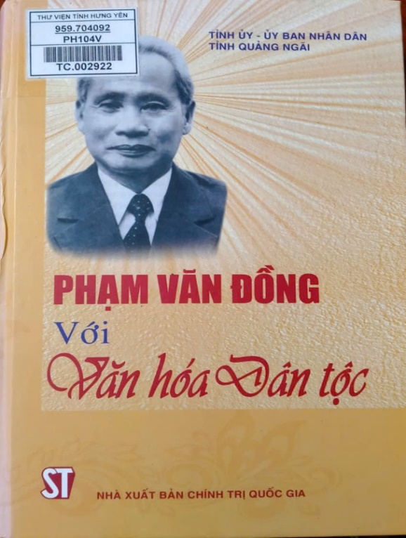 Để giúp bạn đọc có thêm tư liệu quý về công lao to lớn của cố Thủ tướng Phạm Văn Đồng đối với sự nghiệp cách mạng Việt Nam nói chung và đối với văn hóa dân tộc nói riêng, Tỉnh uỷ, Ủy ban nhân dân Tỉnh Quảng Ngãi phối hợp với Nhà xuất bản chính trị Quốc gia - Sự thật tổ chức tuyển chọn, biên soạn và xuất bản cuốn sách “Phạm Văn Đồng với Văn hóa dân tộc”. Cuốn sách dày 552 trang, khổ 16x24 cm. Sách gồm 3 phần: Phạm Văn Đồng nhà văn hóa lớn; những lĩnh vực văn hóa Phạm Văn Đồng quan tâm nhất; những kỷ niệm sâu sắc về Phạm Văn Đồng.