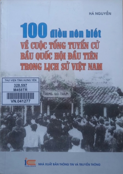 Cuốn sách “100 điều nên biết về cuộc Tổng tuyển cử bầu Quốc hội đầu tiên trong lịch sử Việt Nam” của tác giả Hà Nguyễn, do Nhà xuất bản Thông tin và Truyền thông ấn hành năm 2022. Với độ dày 297 trang, cuốn sách tái hiện một cách hệ thống, sinh động và dễ tiếp cận sự kiện Tổng tuyển cử ngày 06/01/1946, lần đầu tiên trong lịch sử, Nhân dân Việt Nam được trực tiếp thực hiện quyền bầu cử phổ thông, bình đẳng, bỏ phiếu kín để lựa chọn những người đại diện cho ý chí và nguyện vọng của mình. Thông qua 100 câu hỏi, đáp ngắn gọn, tác giả làm rõ bối cảnh lịch sử đặc biệt của đất nước sau Cách mạng tháng Tám, quá trình chuẩn bị công phu, diễn biến của cuộc Tổng tuyển cử, cũng như ý nghĩa to lớn của sự kiện đối với việc xây dựng Nhà nước dân chủ nhân dân đầu tiên ở Đông Nam Á.