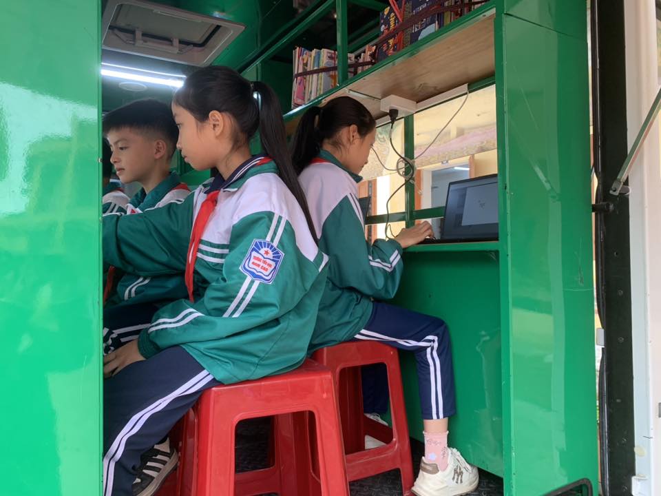 Đọc sách số: Trải nghiệm đọc truyện online và tra cứu kiến thức trên hệ thống máy tính hiện đại tích hợp trên xe lưu động.