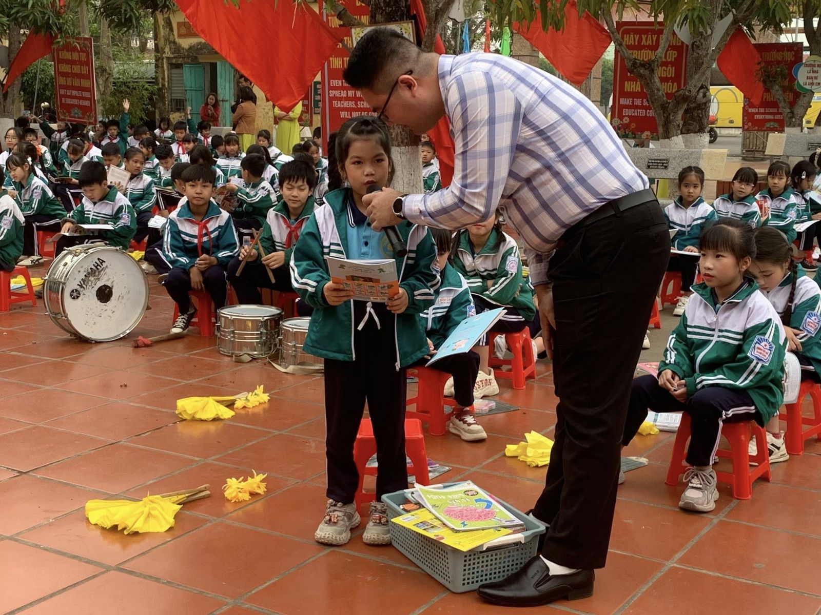 Điểm nhấn của chương trình là phần giao lưu kể chuyện sách và đố vui có thưởng đã nhận được sự hưởng ứng nhiệt tình từ các em học sinh. Bầu không khí giao lưu sôi nổi và thân thiện không chỉ giúp các bạn nhỏ tự tin chia sẻ về tình yêu sách, về những cuốn sách đã đọc mà còn tiếp thêm động lực để các em nuôi dưỡng ước mơ thông qua con đường tri thức.