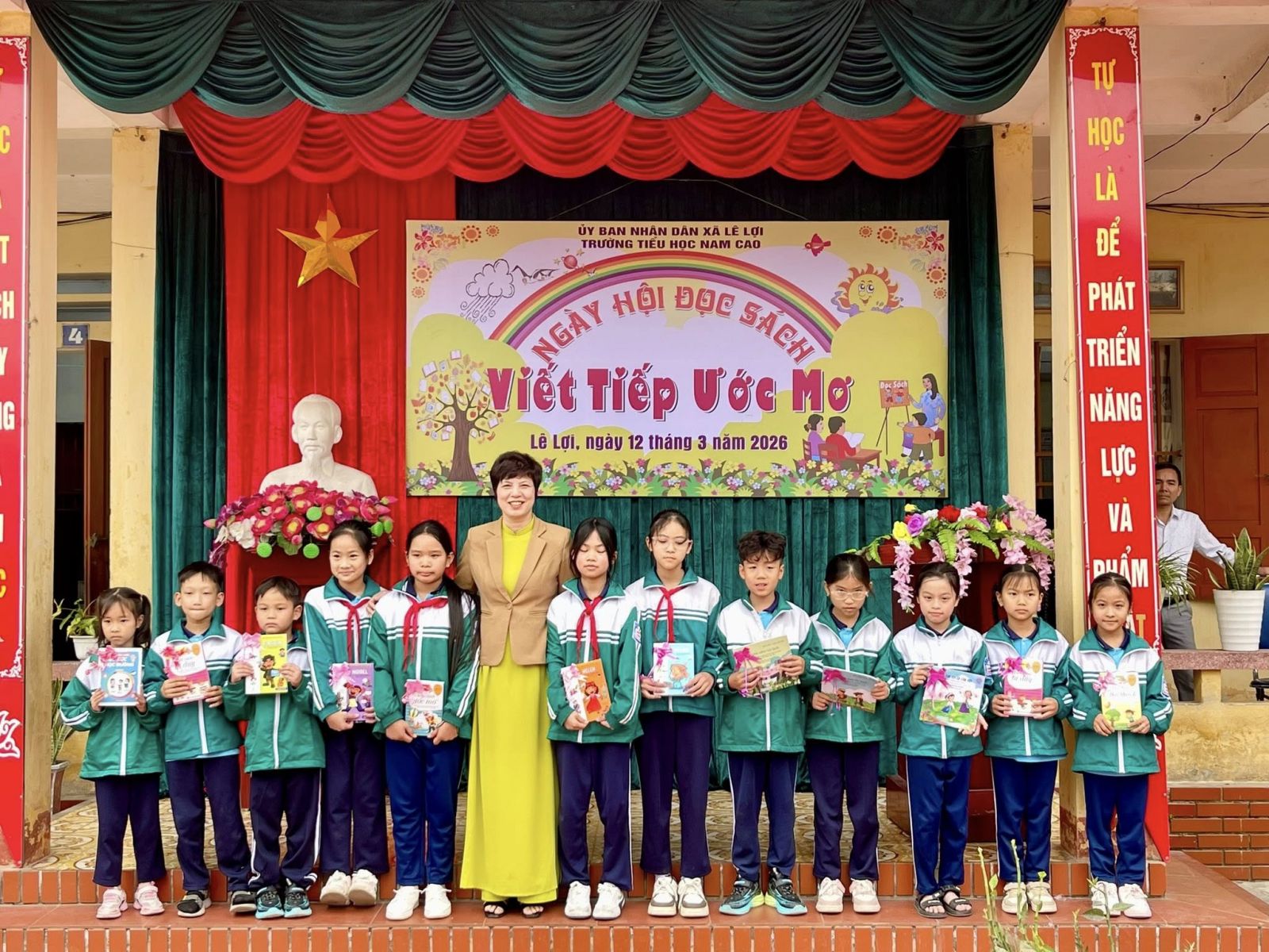 Sáng ngày 12/03/2026, Thư viện tỉnh Hưng Yên đã thực hiện chuyến xe ôtô thư viện lưu động đầu xuân tại Trường Tiểu học Nam Cao, xã Lê Lợi, tỉnh Hưng Yên với chủ đề "Viết tiếp ước mơ". Đây là hoạt động nhằm hưởng ứng Ngày Sách và Văn hóa đọc Việt Nam 21/4 hàng năm, đồng thời khởi động chuỗi hành trình lan tỏa tri thức của đơn vị trong năm 2026. Tham dự chương trình đại diện Thư viện tỉnh có ông Đào Văn Quyến, Giám đốc; bà Lê Thị Thanh, Phó Giám đốc; đại diện lãnh đạo các phòng chuyên môn cùng một số viên chức của đơn vị. Về phía địa phương có ông Đinh Đức Cảnh, Phó Trưởng phòng Văn hóa - Xã hội xã Lê Lợi; cô giáo Trần Thị Loan, Bí thư Chi bộ, Hiệu trưởng, cùng toàn thể cán bộ, giáo viên và 309 em học sinh Trường Tiểu học Nam Cao.