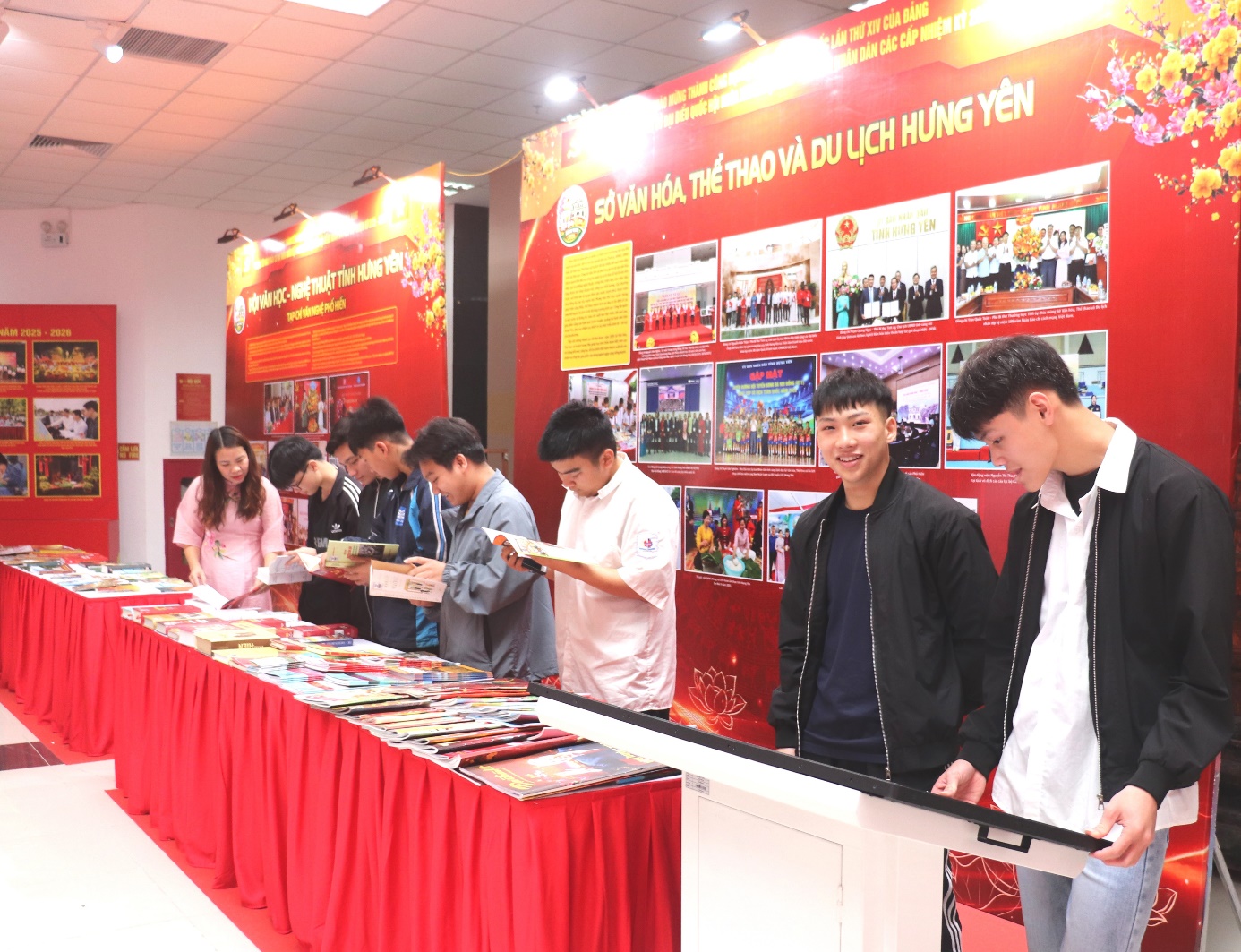 Nhân dịp này, Sở Văn hóa, Thể thao và Du lịch giao cho Thư viện tỉnh Hưng Yên phối hợp, tham gia trưng bày giới thiệu các ấn phẩm báo, tạp chí Trung ương, báo Xuân của các tỉnh thành phố trong cả nước; các tài liệu về Đảng quang vinh, Đảng bộ tỉnh Hưng Yên; phong tục, tập quán, truyền thống tốt đẹp của người Việt Nam, về mảnh đất con người Hưng Yên gồm các cuốn sách: “Đảng Cộng sản Việt Nam - trí tuệ, bản lĩnh, đổi mới vì độc lập dân tộc và chủ nghĩa xã hội”; “Toàn Đảng, toàn dân chung sức, đồng lòng xây dựng đất nước ta ngày càng phồn vinh, hạnh phúc”; “Lịch sử Đảng bộ tỉnh Hưng Yên”; “Lịch sử Đảng bộ Thái Bình”; “Hưng Yên tỉnh nhất thống chí”; “Phố Hiến”; “Đất và người Thái Bình”; “Danh nhân Hưng Yên”; “Bác Hồ với Hưng Yên, Hưng Yên với Bác Hồ”; “Tết Việt Nam xưa”; “Hội hè lễ Tết của người Việt”,… Đặc biệt, trong không gian trưng bày Báo Xuân, ngoài báo in truyền thống, Thư viện tỉnh giới thiệu báo Xuân trực tuyến Xuân Bính Ngọ 2026. Với những thao tác đơn giản, bạn đọc chỉ cần truy cập vào trang wedsite của Thư viện tỉnh để đọc báo trực tuyến. Gian trưng bày thu hút đông đảo đại biểu, nhân dân đến thăm quan và trải nghiệm.