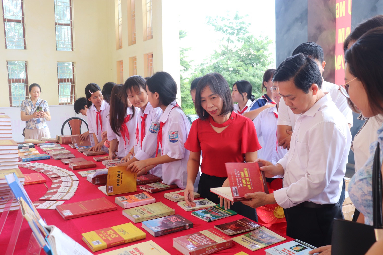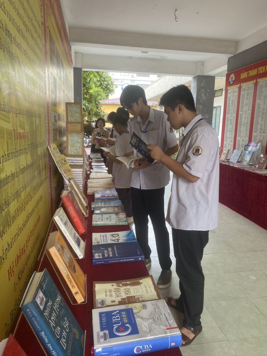 thăm quan gian trưng bày sách tại trường THPT Chuyên Hưng Yên